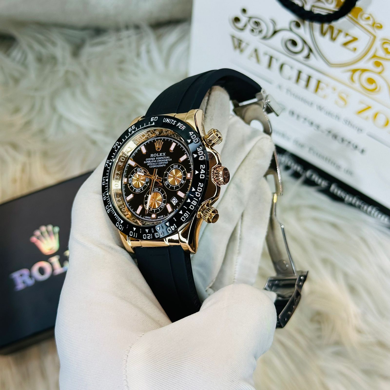 • Code: RLX Daytona Belt Rose Gold Black Watches