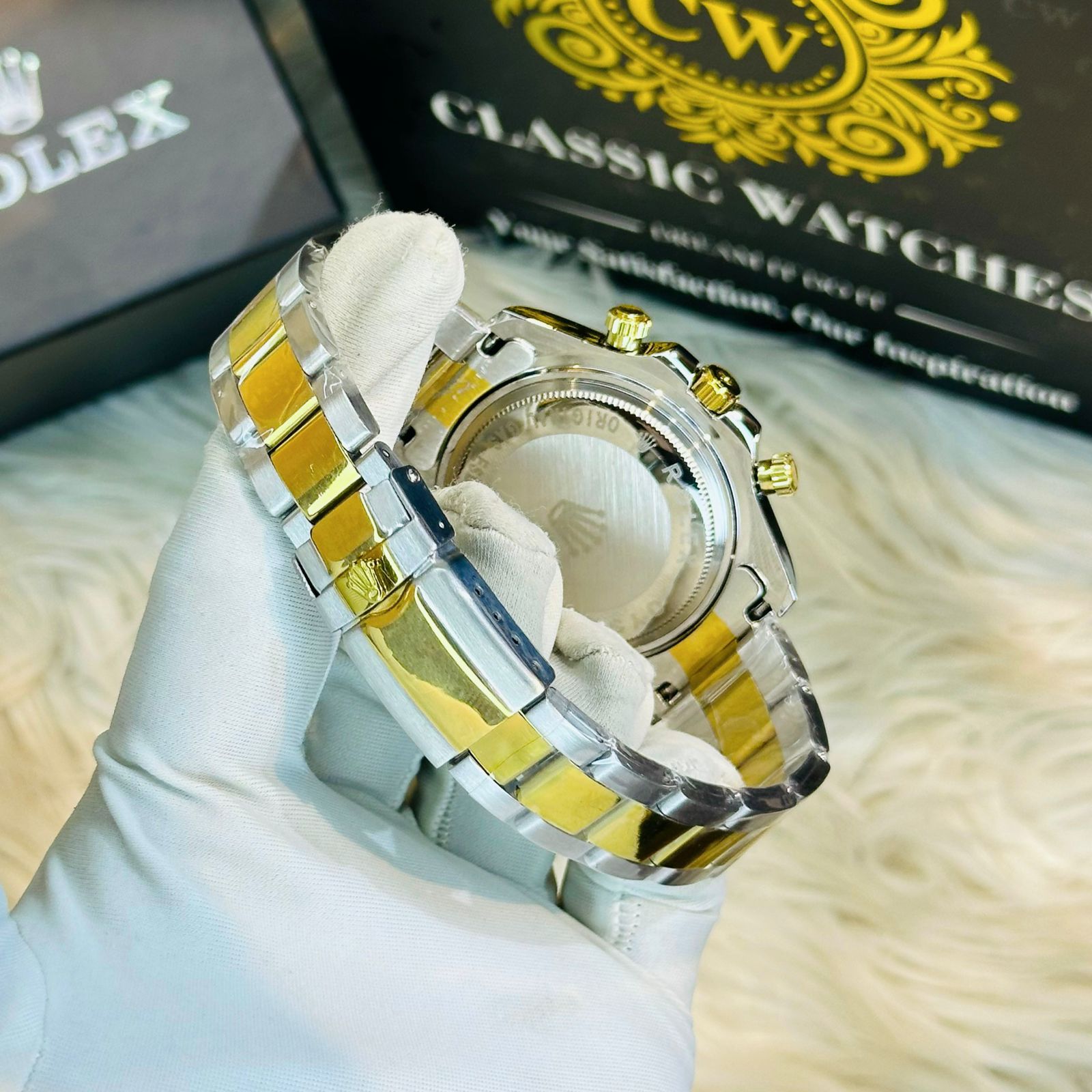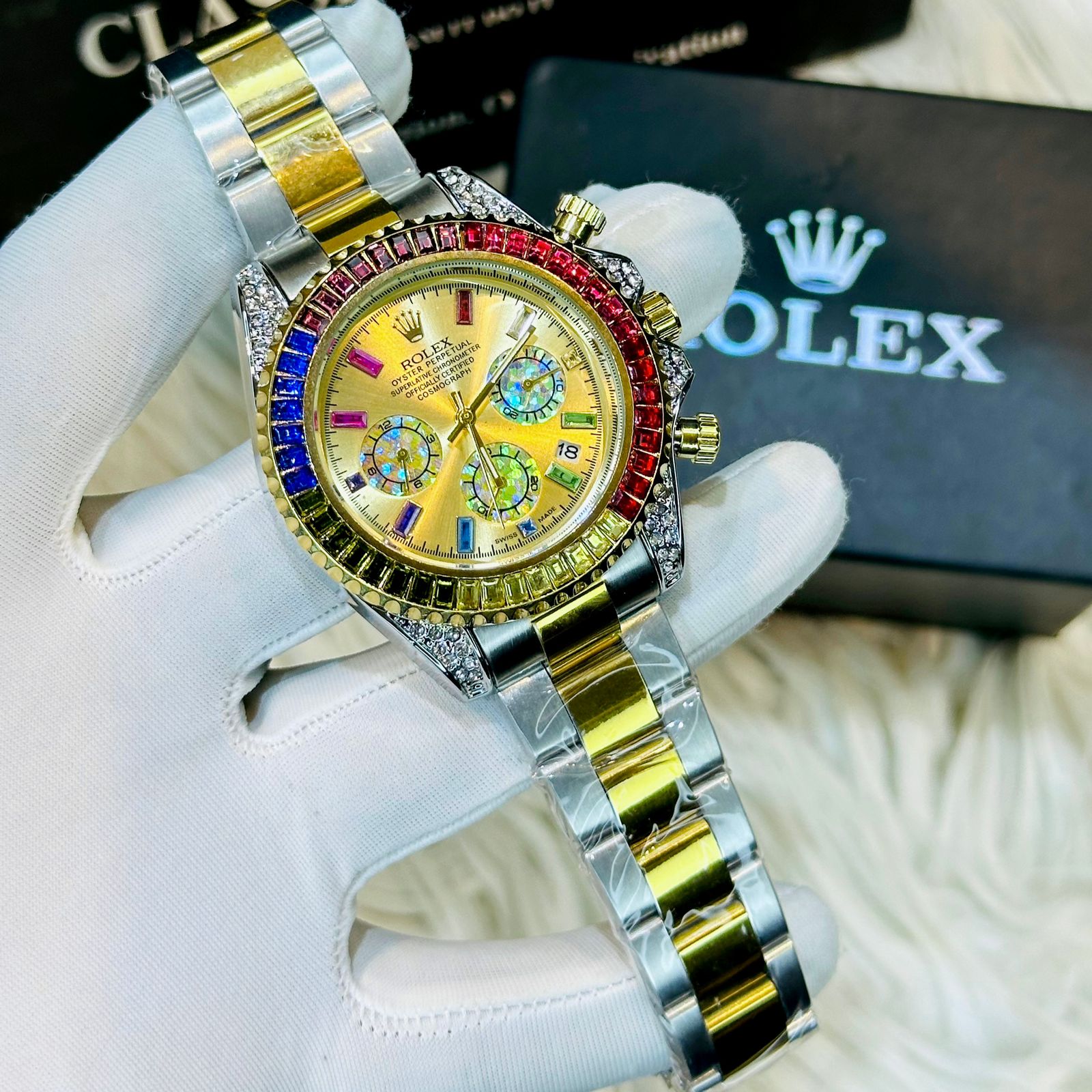 Premium Quality RLX Rainbow Golden Watches & Bracelet Combo