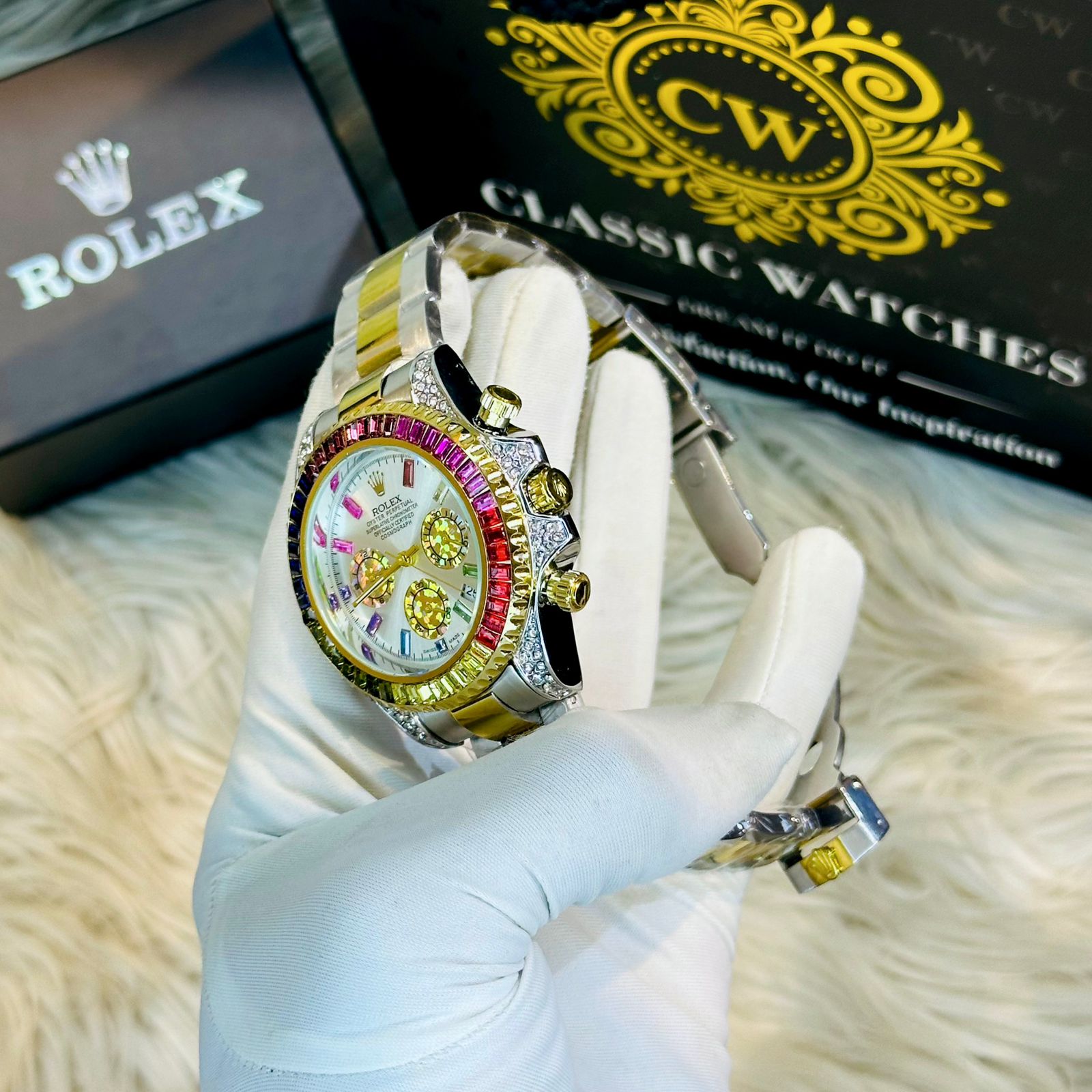 Premium Quality RLX Rainbow White Watches & Bracelet Combo