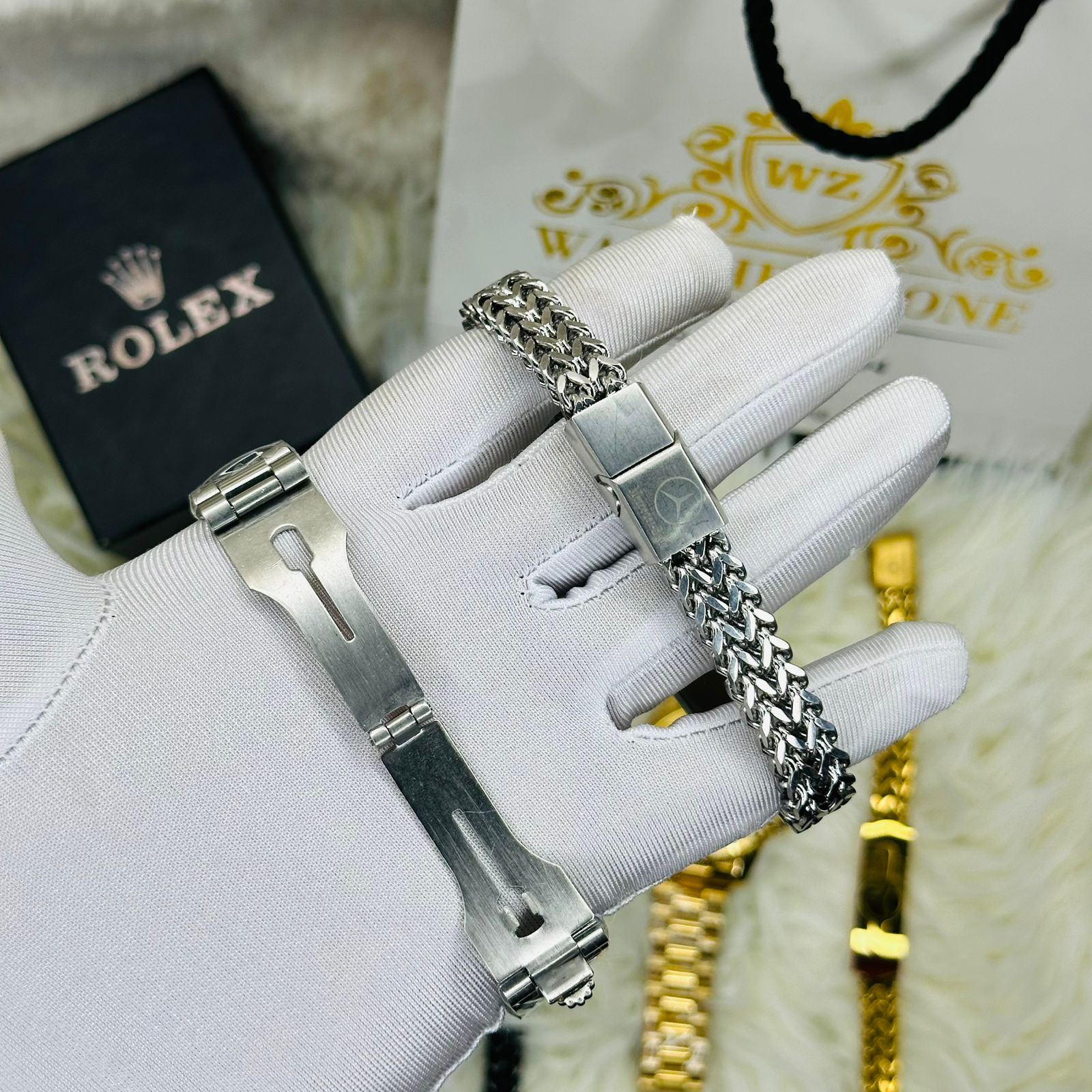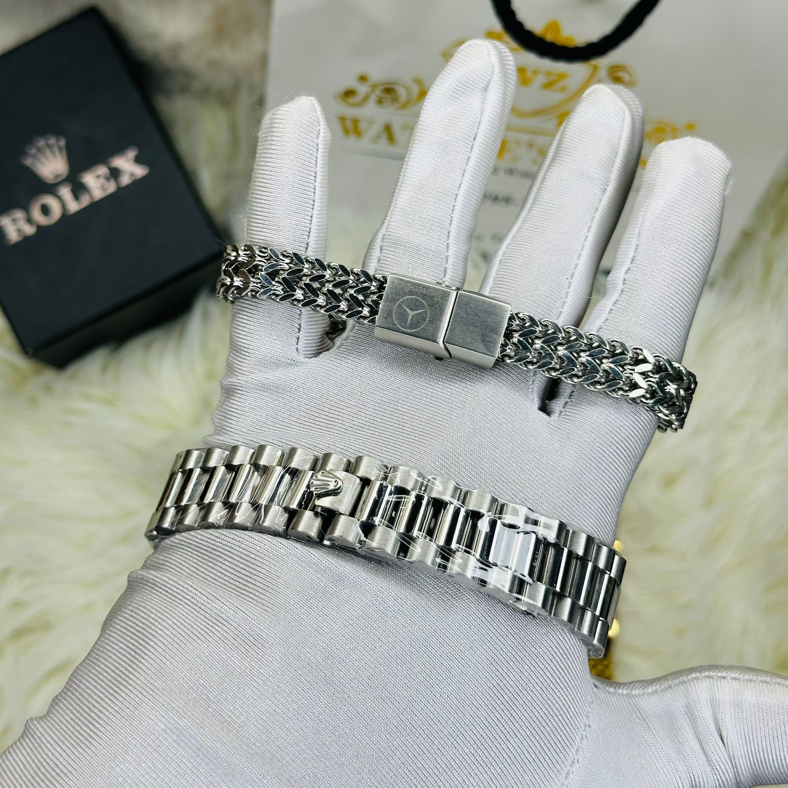 Premiume Quality Yach Sub Silver Blue RLX Watches & Bracelet Combo