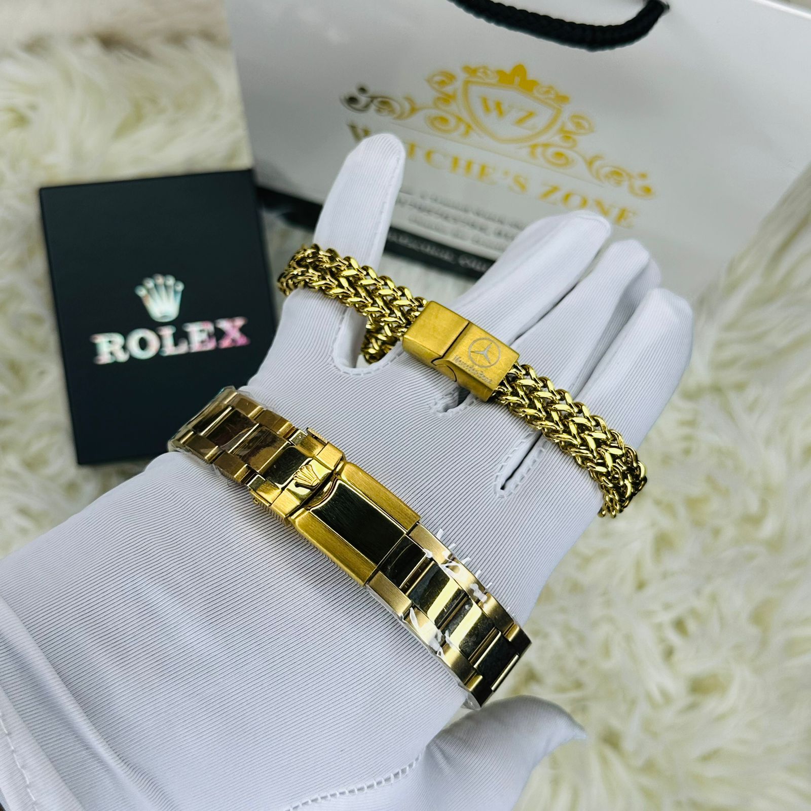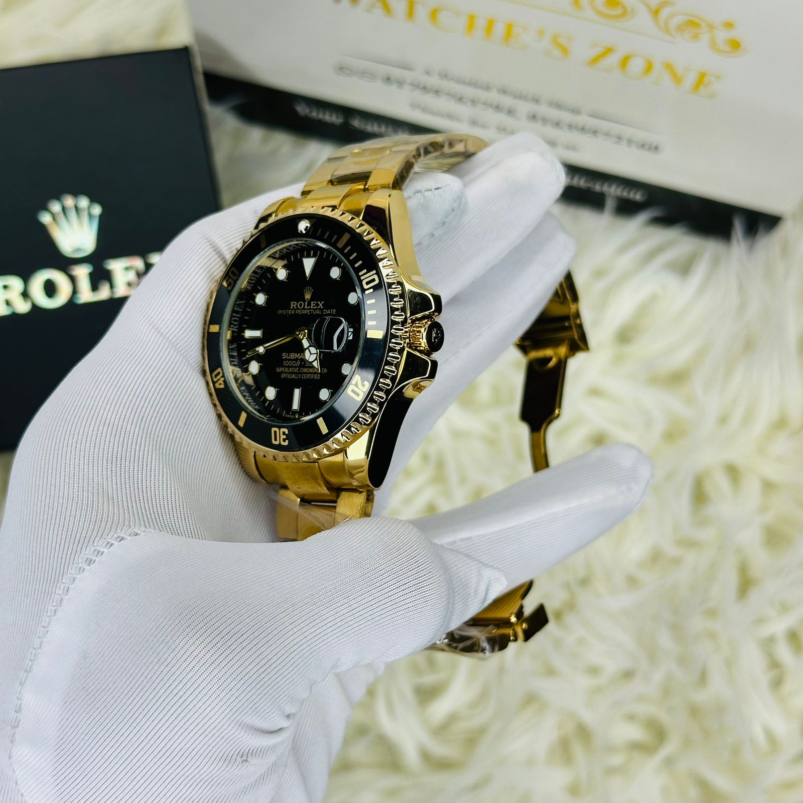 - Code: RLX Submariner Full Golden Dial Black Watches & Bracelet Combo